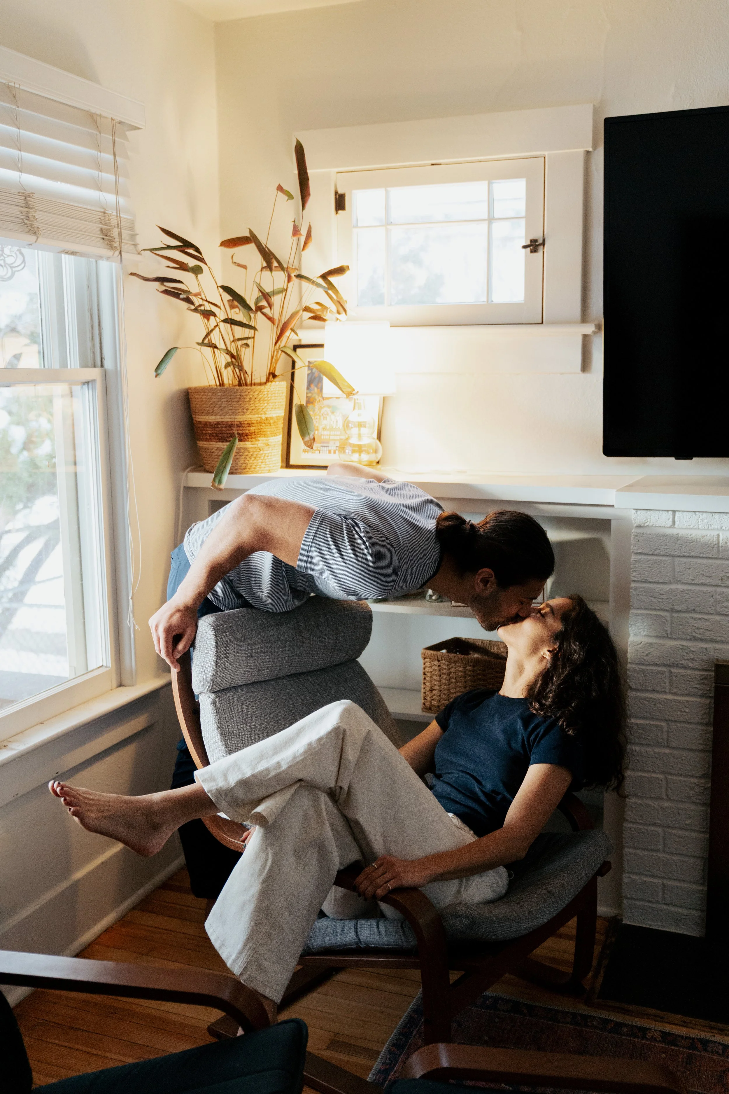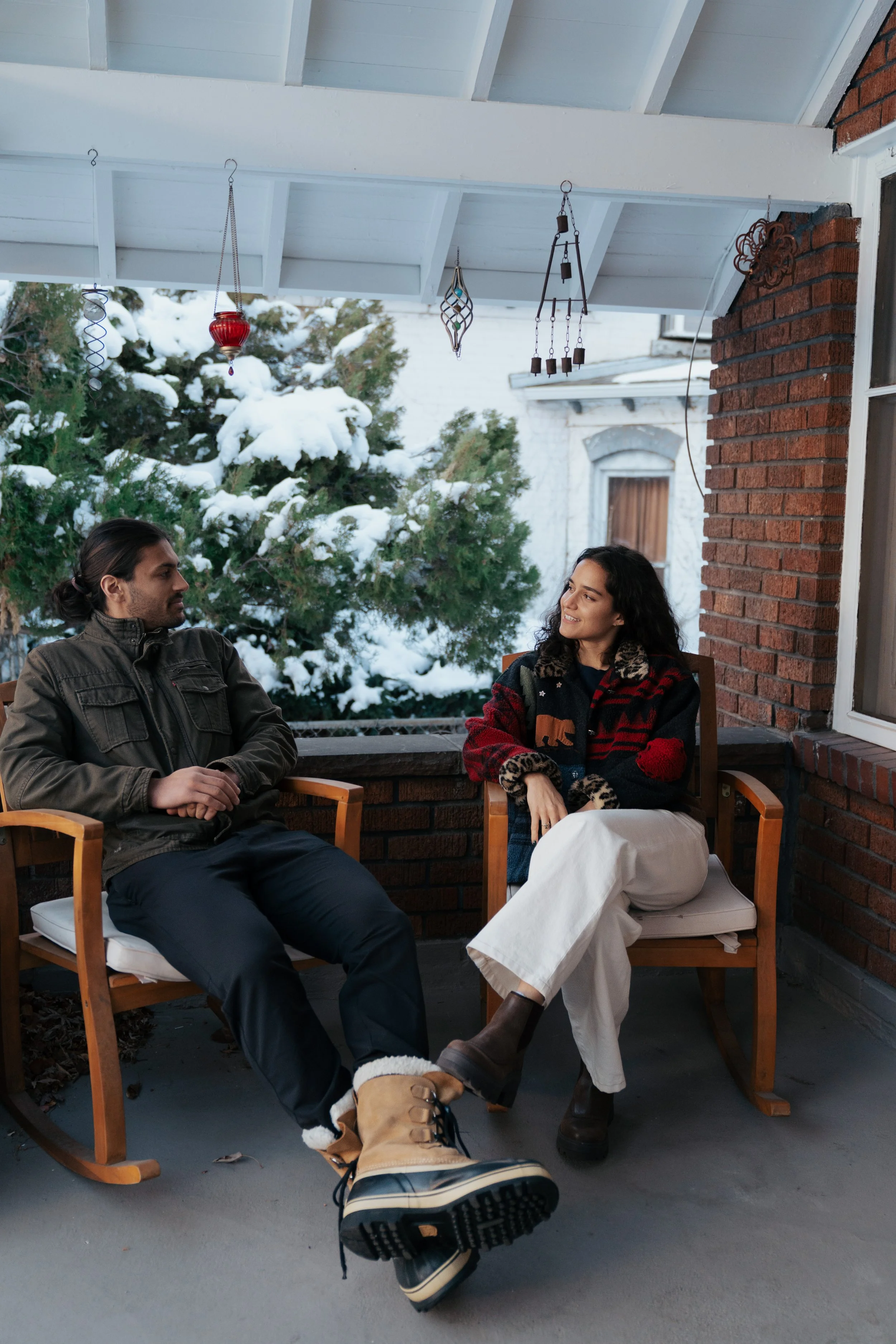 We ended the shoot outdoors, Charlie in his oversized boots and Marissa in her grandmother’s fleece. They sat in their rocking chairs, reflecting on their move and on this chapter together.