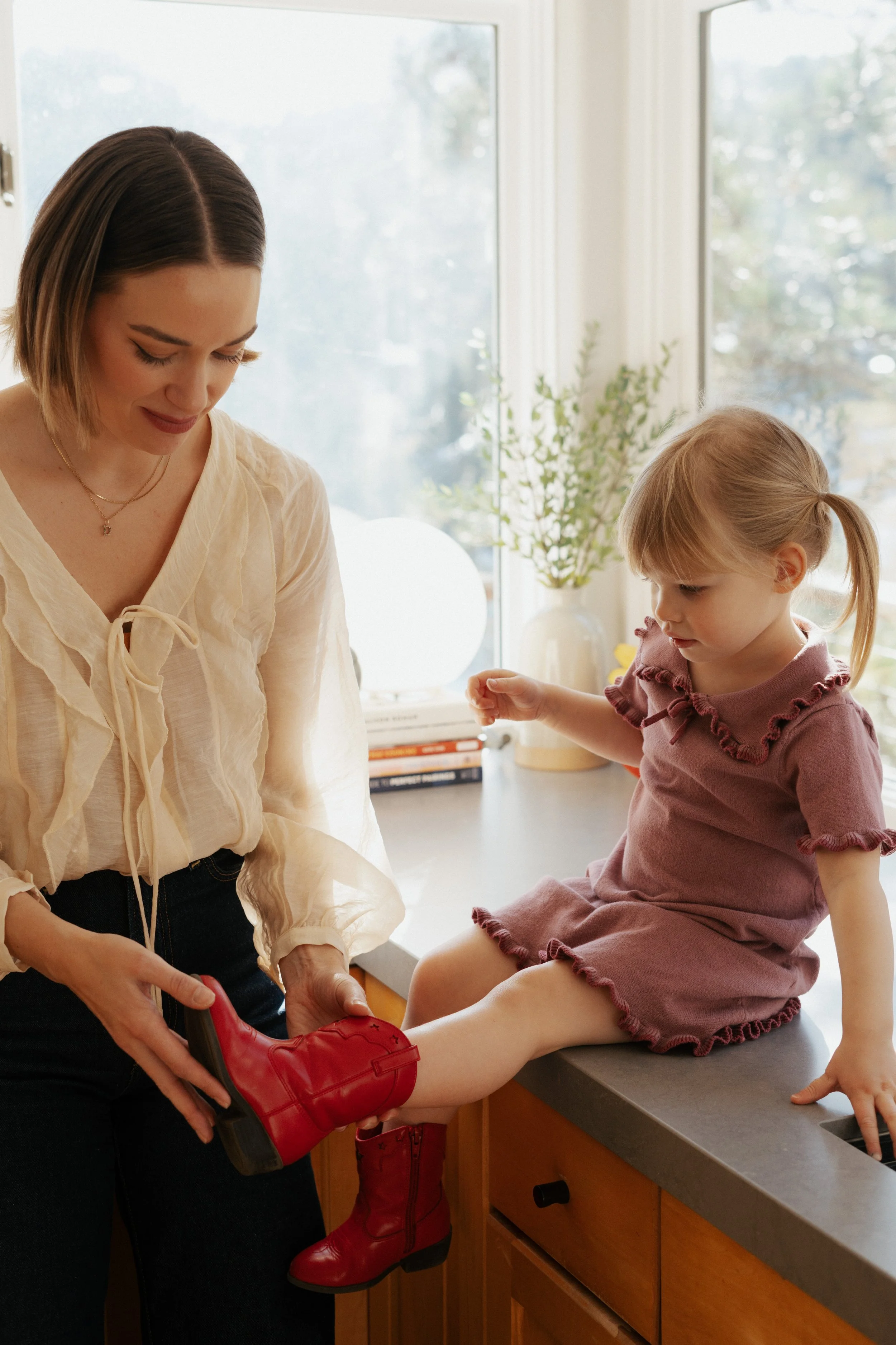 We danced, we played, and Dove’s red cowboy boots proved that a bold pop of color is always a good idea. The aesthetic felt like a Tecovas ad met a mid-century mountain home and had a baby — effortlessly stylish with a lived-in feel.