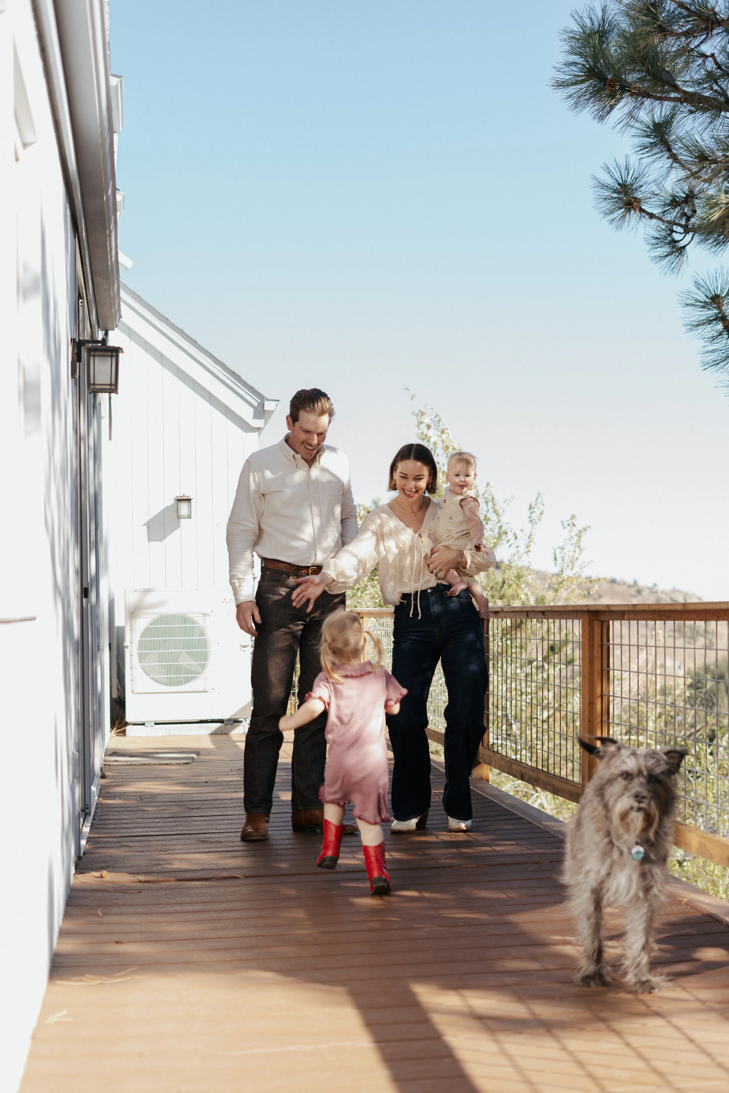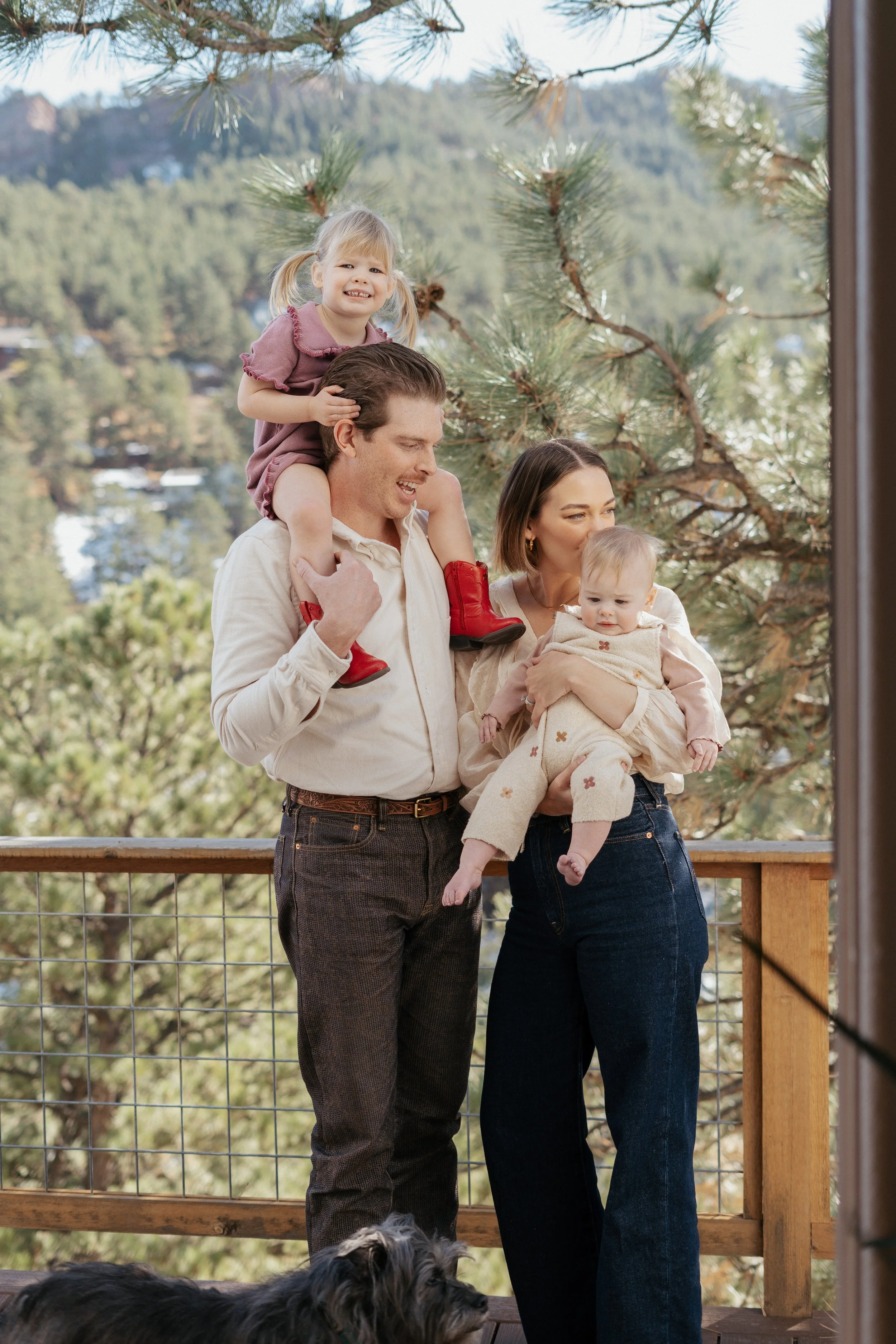 Nestled in the mountains, Ashley and Brad recently moved into a beautiful property in Colorado after spending their formative years in the Midwest. With a wrap around deck and large, open windows, the house feels like it is woven into the forest. They envisioned a cozy, at-home session that felt like an elevated version of their everyday life — relaxed, intentional, and saturated with warmth.